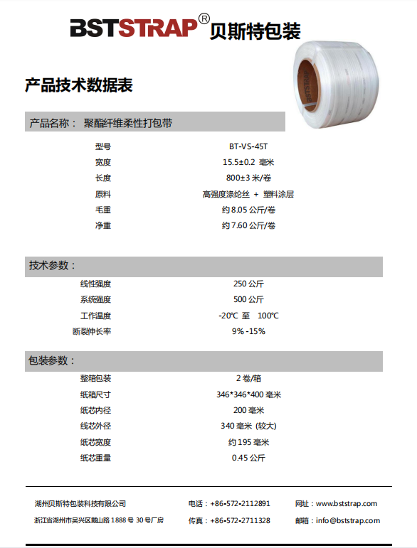 15.5mm 聚酯纤维打包带 BT-VS-45T